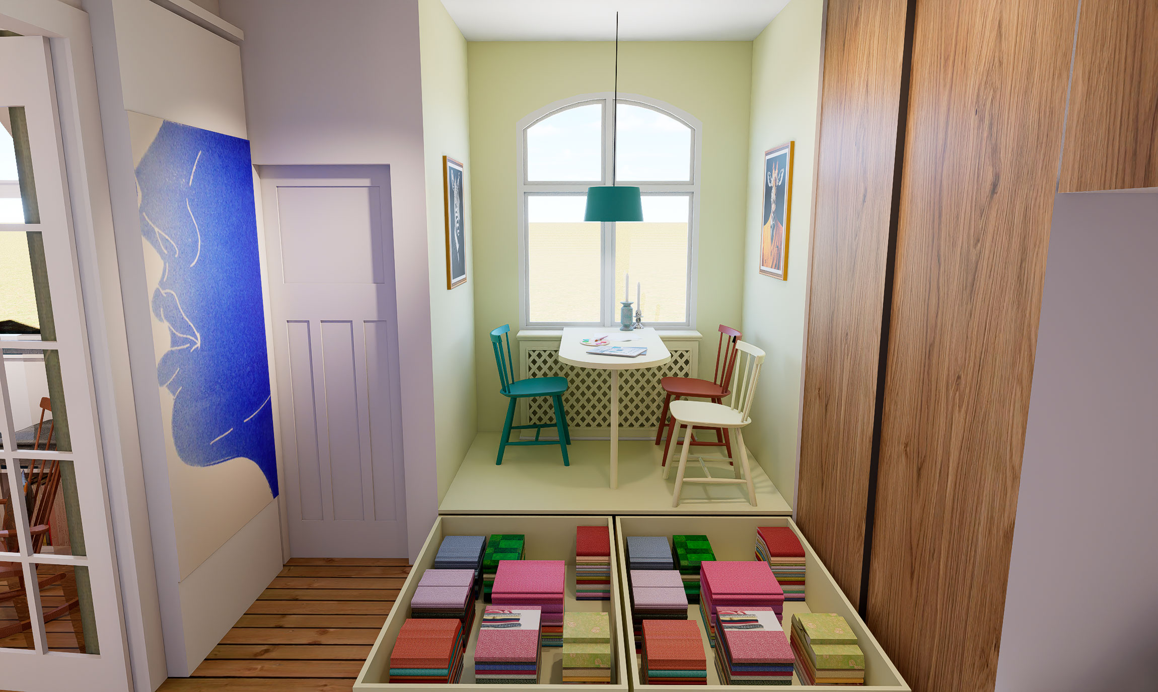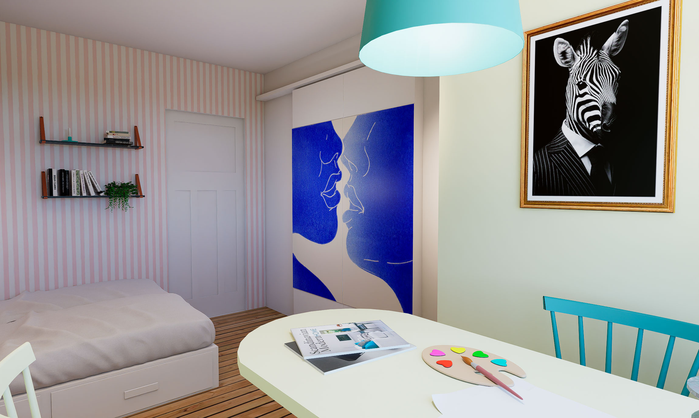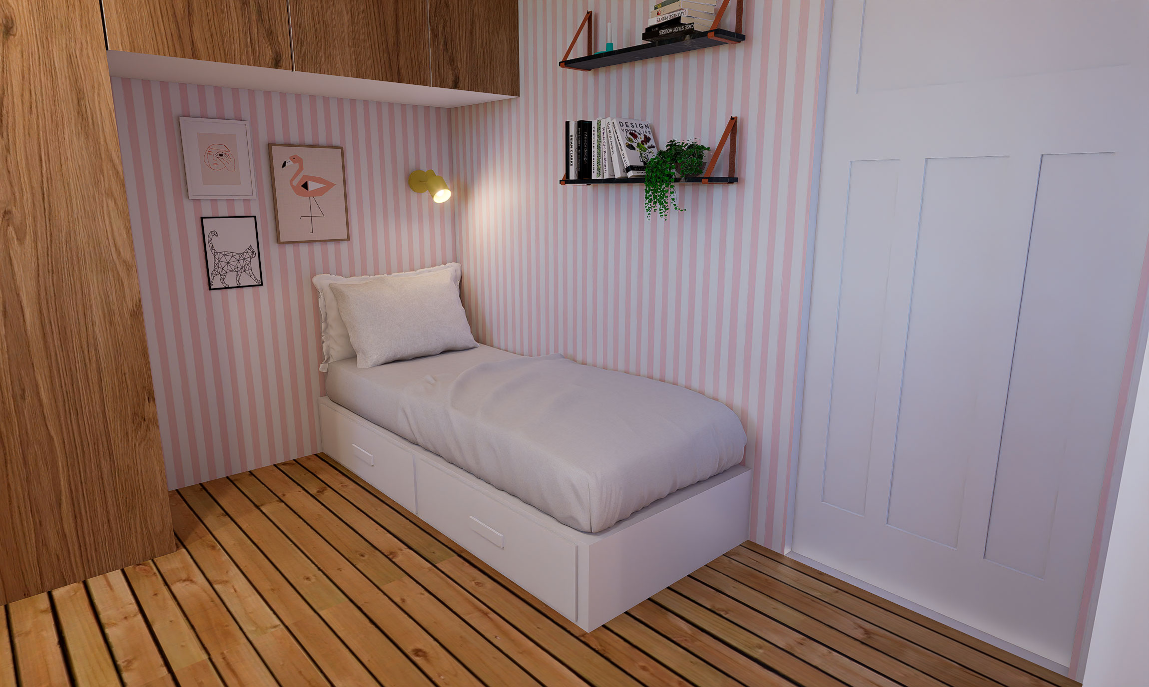 For at løse rumfordelingen arbejdede vi med fleksible sove-løsninger, rumfordeling og opbevaring.