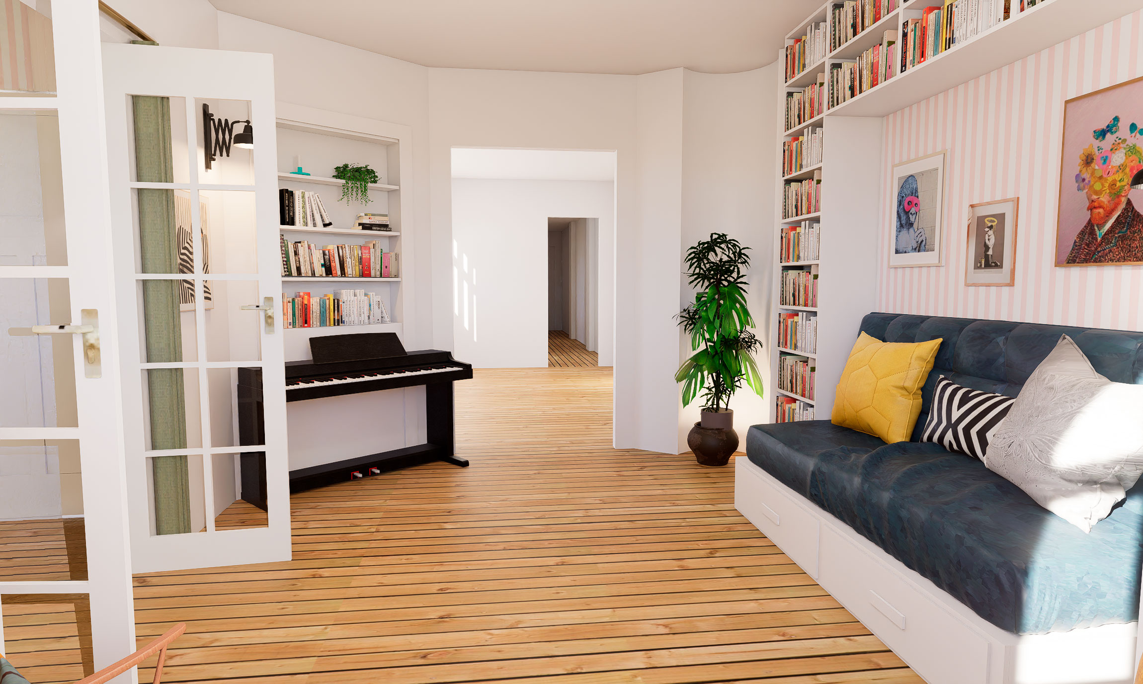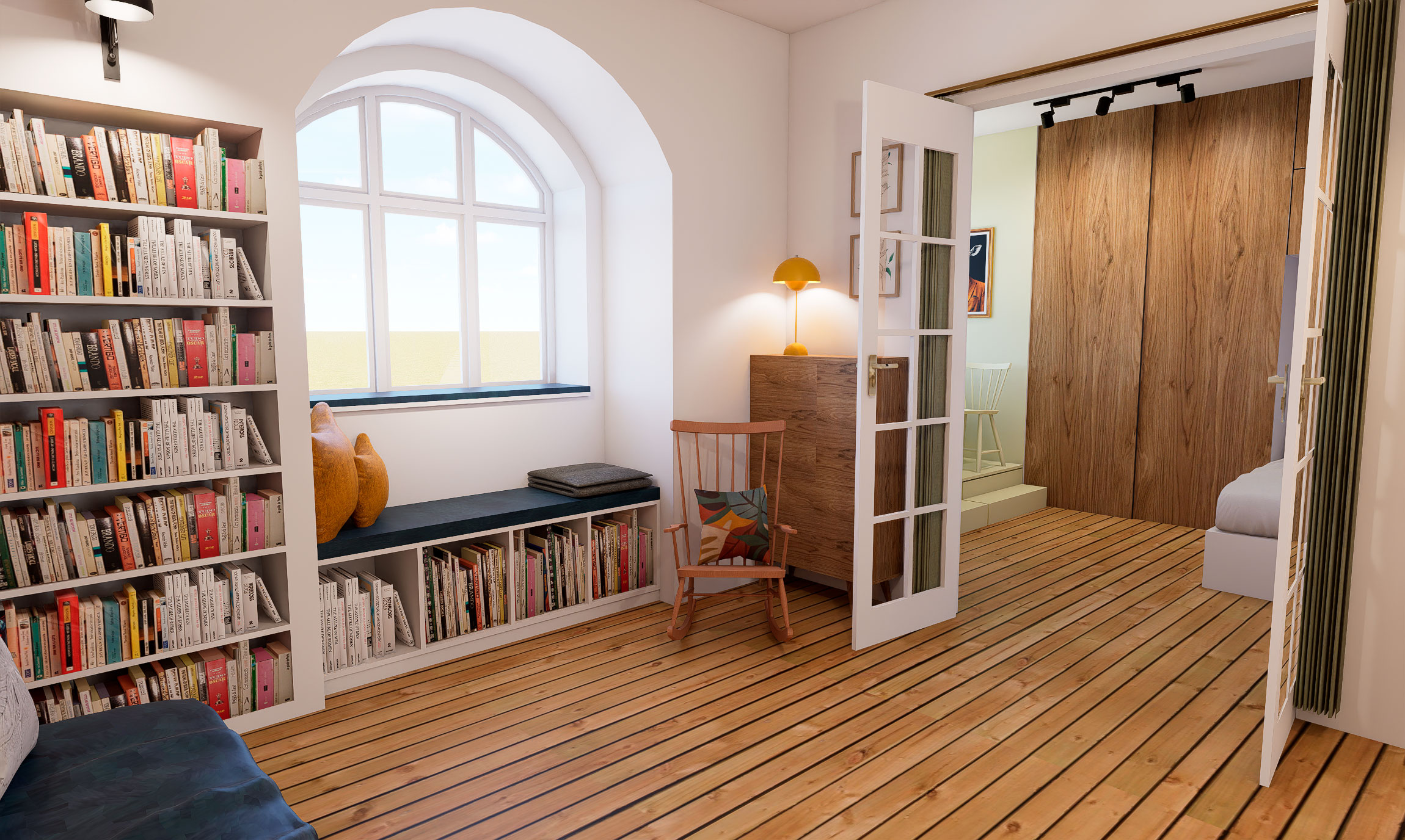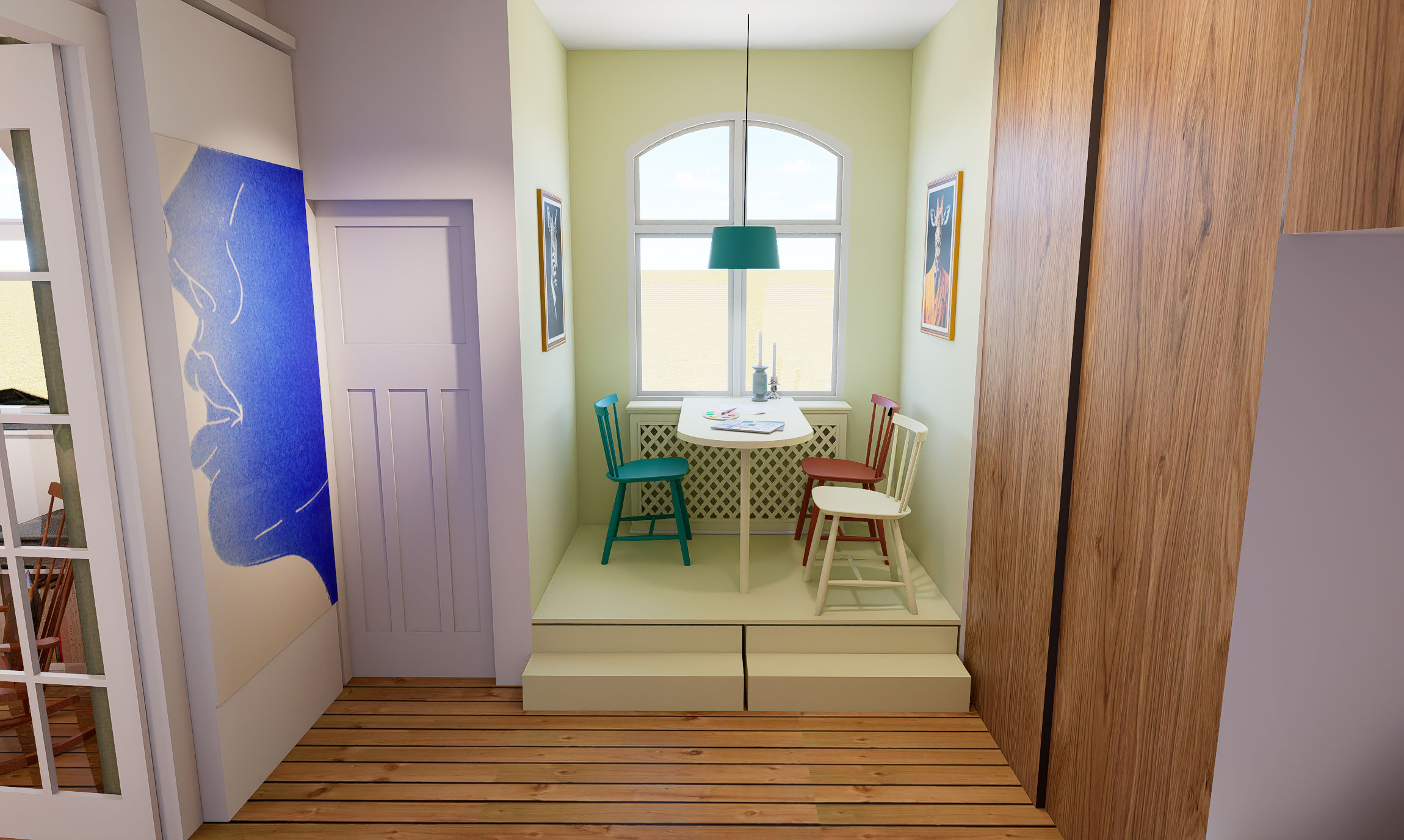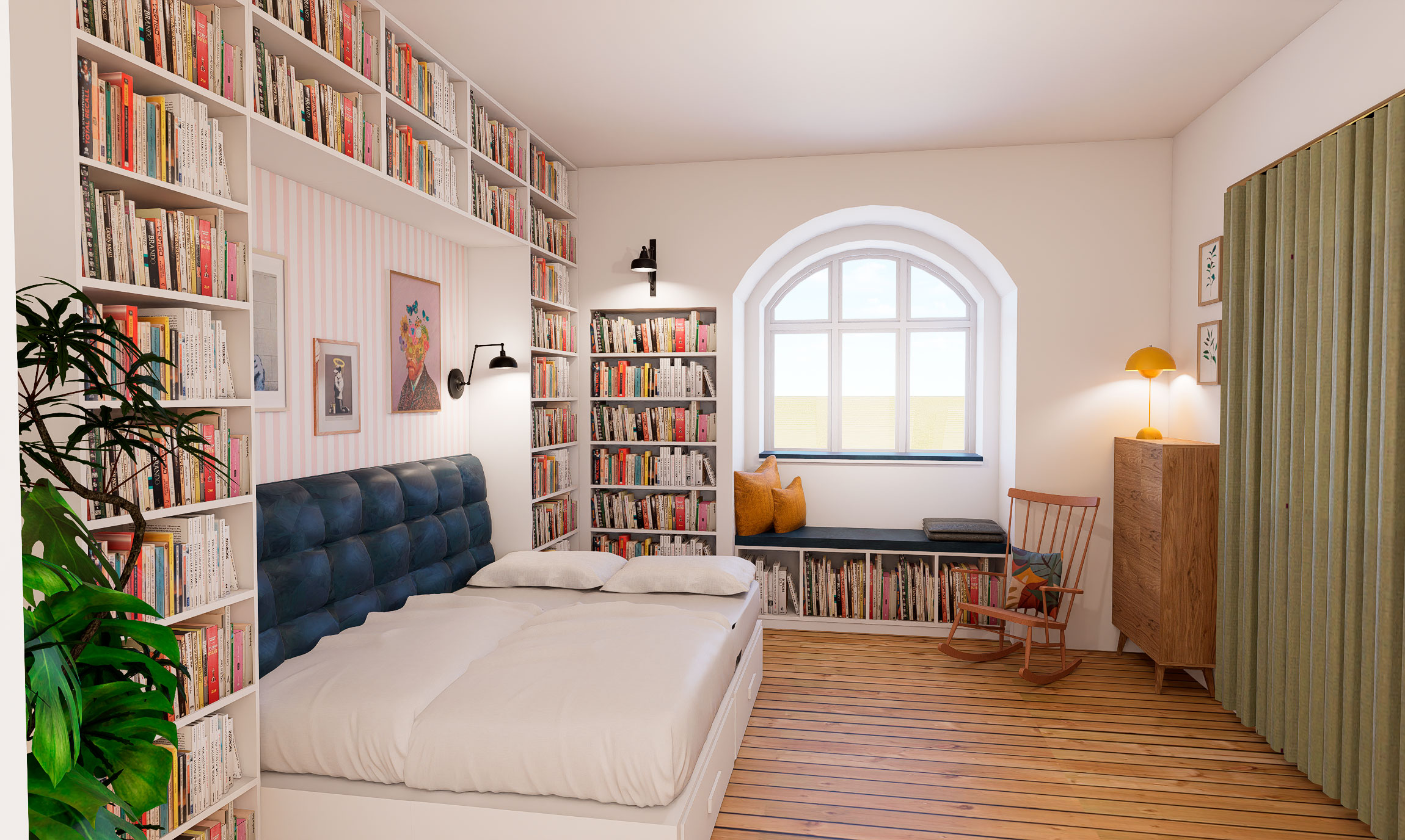 For at løse rumfordelingen arbejdede vi med fleksible sove-løsninger, rumfordeling og opbevaring.