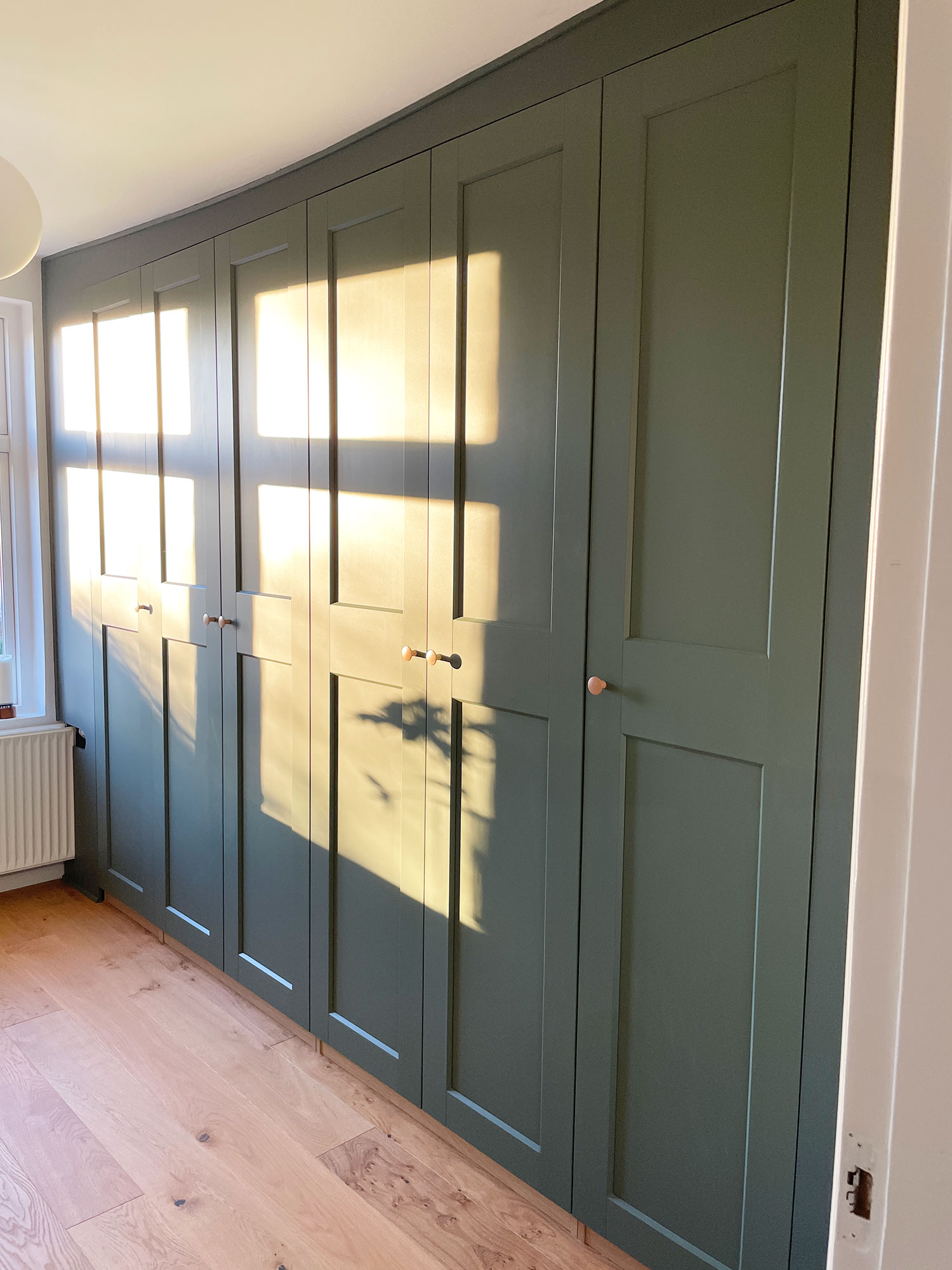 Du vælger selv skabet eller vi kan hjælpe dig. Pris for indbygningen uden skab: 8.500 kr.