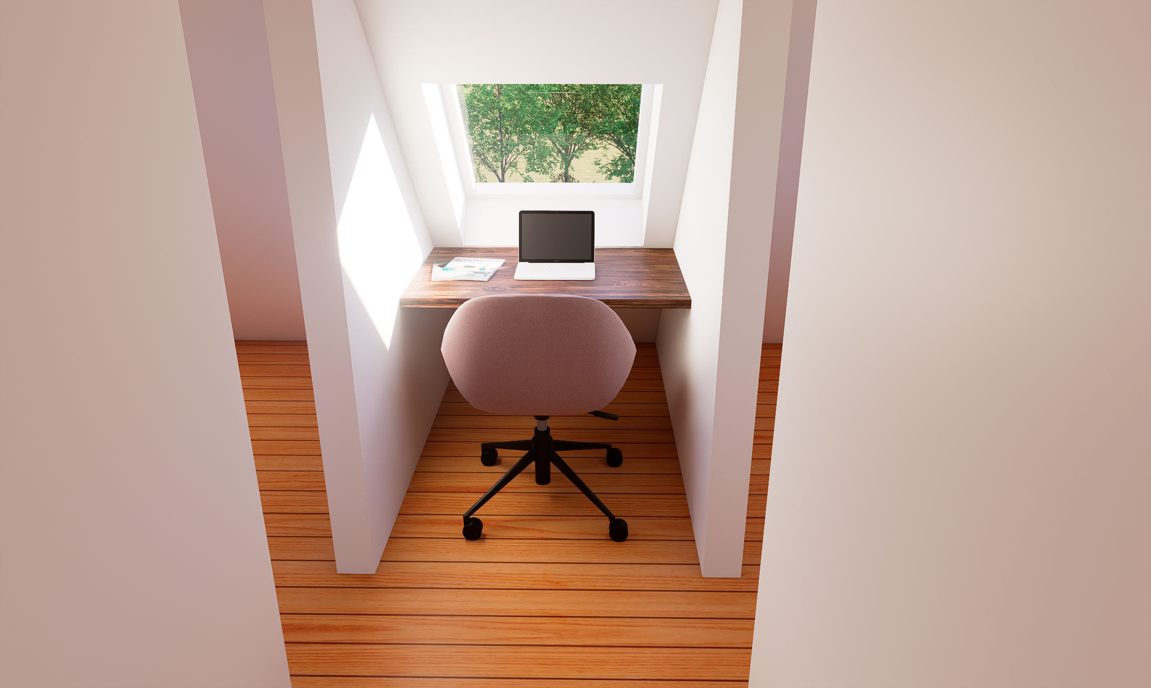 – Lavet lille kontorplads ved ovenlysvinduet.