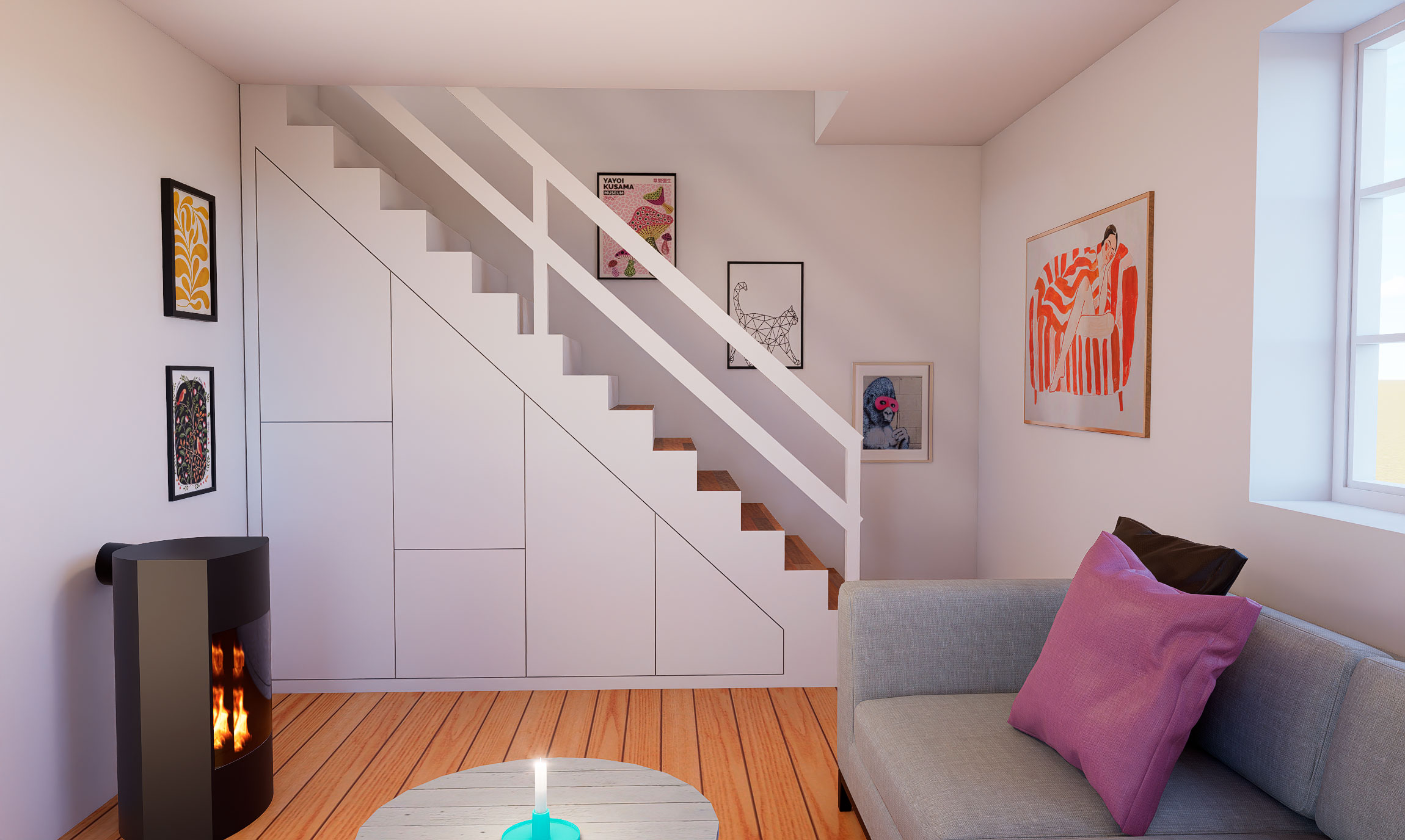 – Lavet opbevaring under trappen, skabe i soveværelset og gangen, opbevaring under sengen og i spisebordsbænken.